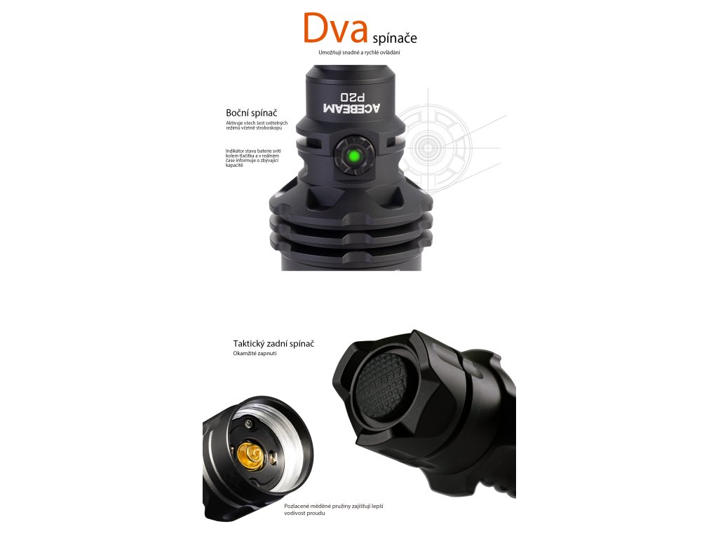 Každý model ACEBEAM je vyroben z prvotřídního leteckého hliníku, odolný proti nárazům i vodě (IP68) a osazen nejmodernějšími LED diodami. Díky USB-C nabíjení, vyměnitelným akumulátorům a intuitivnímu ovládání jsou svítilny praktické v terénu i při každodenním použití.
