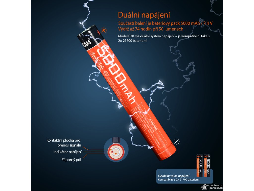 1x Bateriový blok dvou baterií AceBeam 21700 5000 mAh