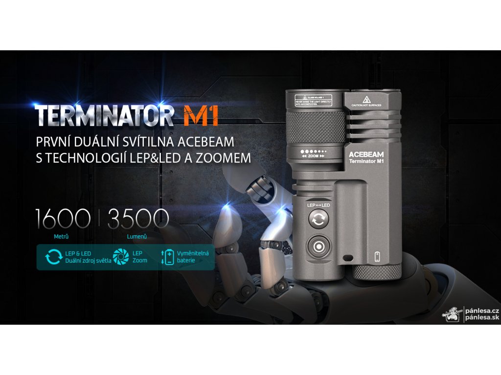 1x AceBeam Terminator M1, 3500 lm, MAO - LEP a LED svítilna se zoomem