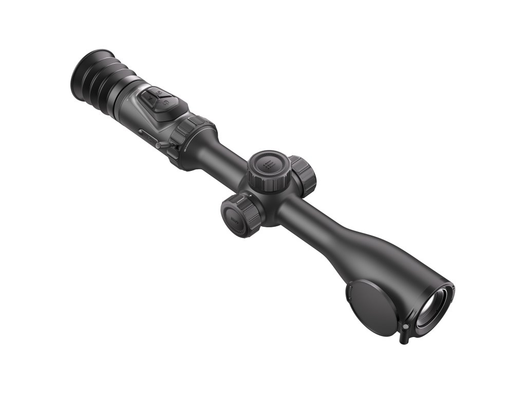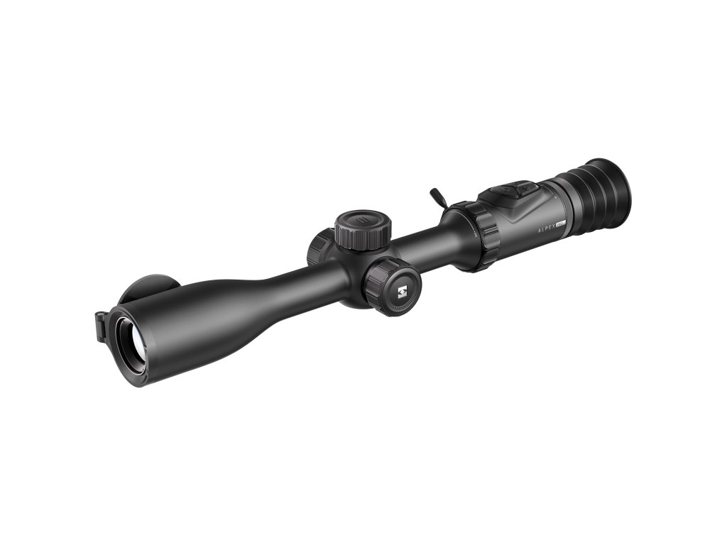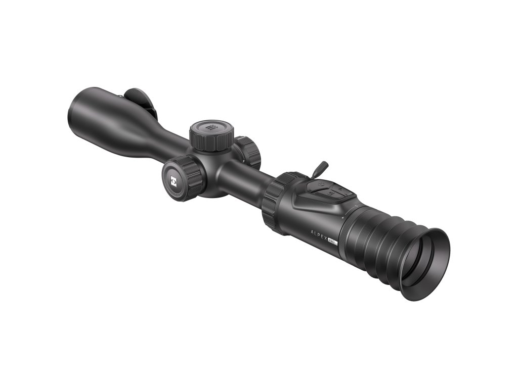 Hikmicro Alpex PRO. Kompletní facelift, který obměnil celé tubusové tělo, včetně posunutí ostření objektivu do středu puškohledu, ale především přináší vůbec první 4,5K senzor na trh. Obrazovka narostla na úctyhodnou hodnotu 0,6 palce, čímž se výrazně zvětšilo zorné pole. To vše v mimořádně lehkém těle s hmotností 852 gramů včetně dvou integrovaných a jedné externí baterie.