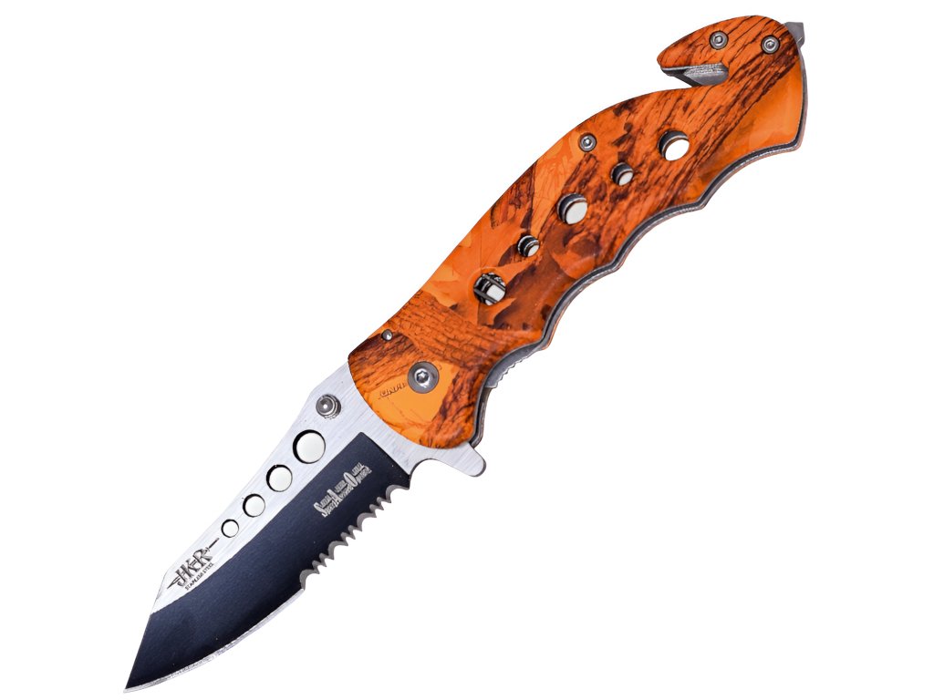 Importní značka JKR španělského výrobce Joker z tradiční líhně nožů - města Albacete. JKR Zavírací nůž, 8 cm, oranžová kamufláž, hliník je skvělým společníkem na každodenní nošení, především díky velmi nízké hmotnosti a dostatečně dlouhému ostří. Nůž dále disponuje pilkou, vnitřní pojistkou proti nechtěnému zavření, střenkami z hliníku s motivem oranžové kamufláže a na konci nože je hrot na rozbíjení oken a bezpečnostní řezák. Konstrukčně velmi jednoduchý nůž vyniká kvalitním zpracováním.