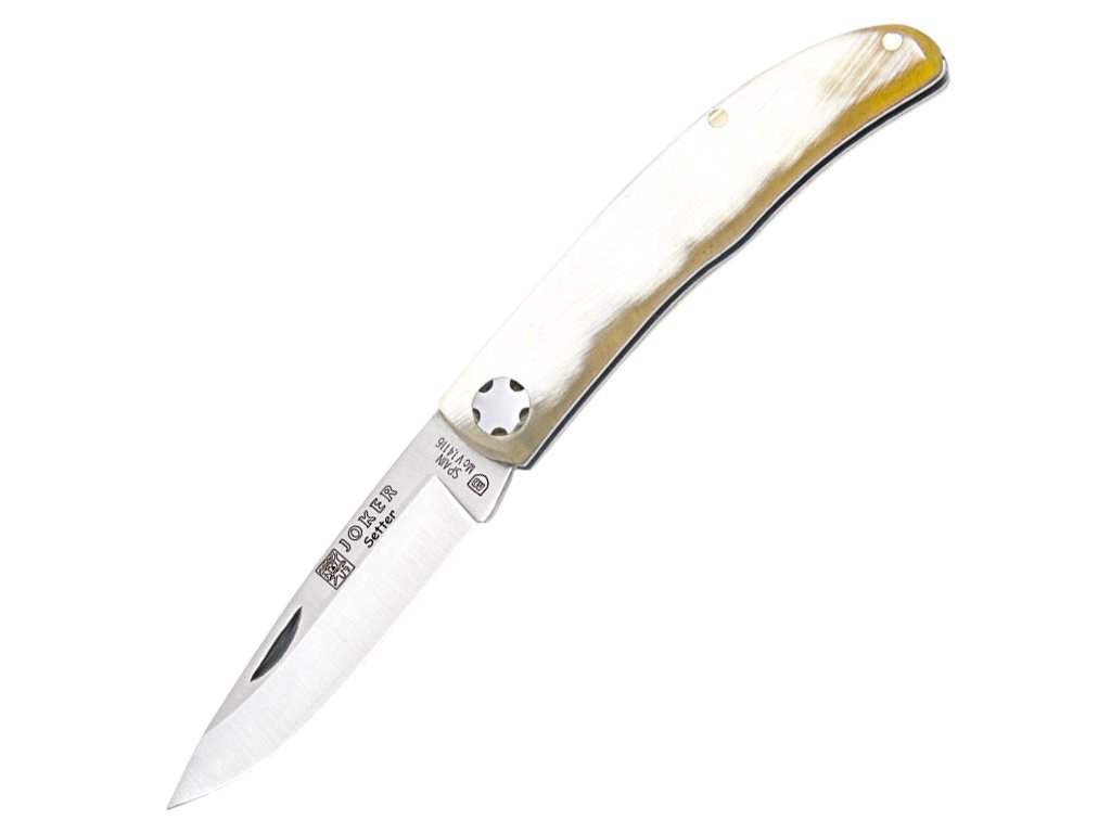 Španělský výrobce Joker je tradiční výrobce z tradiční líhně nožů - města Albacete. Joker Setter – Zavírací nůž, 6,5 cm, bizoní roh je ze série zavíracích nožů, který je skvělým společníkem na každodenní nošení, především díky velmi nízké hmotnosti a kompaktnosti. Nůž disponuje jednoduchou konstrukcí s odporovou pojistkou a střenkami z bizoního rohu. I přes svojí dostupnost si nůž zachovává vysoký standard kvality typický pro značku Joker.