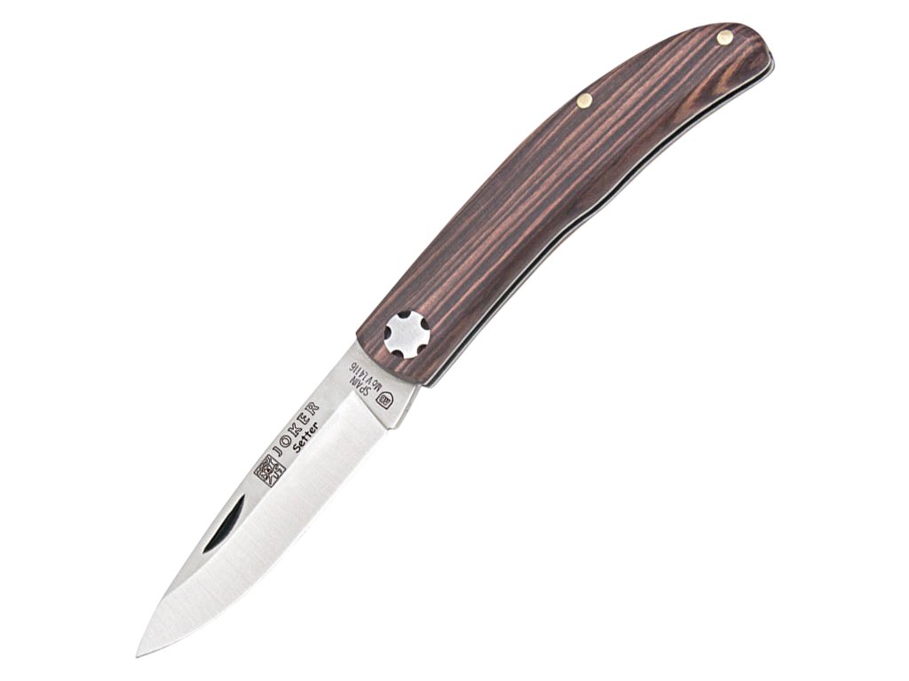 Španělský výrobce Joker je tradiční výrobce z tradiční líhně nožů - města Albacete. Joker Setter – Zavírací nůž, 6,5 cm, palisandrové dřevo je ze série zavíracích nožů, který je skvělým společníkem na každodenní nošení, především díky velmi nízké hmotnosti a kompaktnosti. Nůž disponuje jednoduchou konstrukcí s odporovou pojistkou a střenkami z palisandrového dřeva. I přes svojí dostupnost si nůž zachovává vysoký standard kvality typický pro značku Joker.